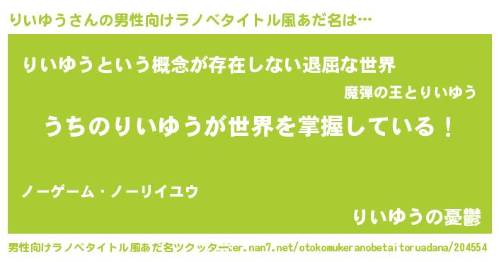 | ヘコむあだ名 | 『りいゆう(震え声)』『りいっふぃ~』 |