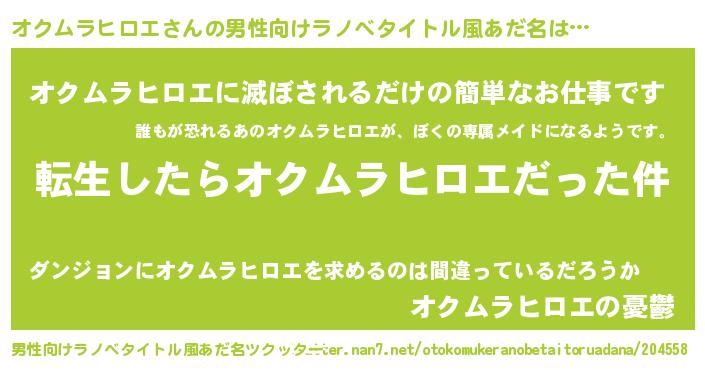 | 欧米人風あだ名 | 『トリンドルオクムラヒロエ』 |
