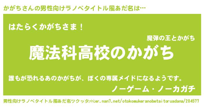 | 女子向けラノベタイトル風あだ名 | 『かがちなんてお断りですっ。』 |
