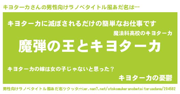 | 意味不明あだ名 | 『住所不定無職キヨターカ(14歳)』 |