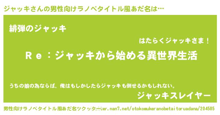 | 女子向けラノベタイトル風あだ名 | 『闇のジャッキ』『ジャッキの婚約者』 |