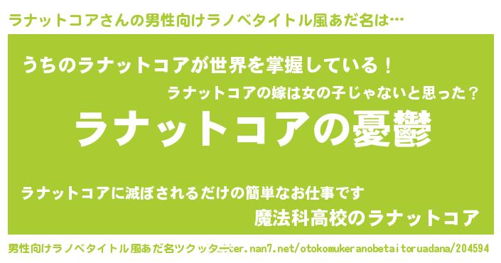 | 胡散臭い通販商品みたいなあだ名 | 『必ず成功する霊験あらたかなお札…その名も「ラナットコア」』 |