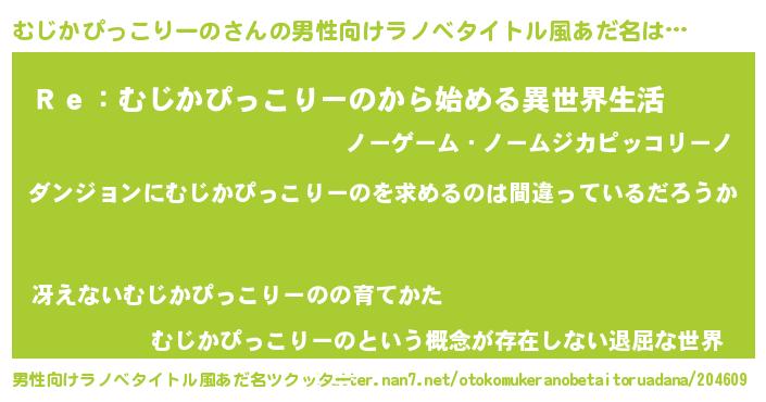 | 女子向けラノベタイトル風あだ名 | 『むじかぴっこりーのは平凡を望む』 |