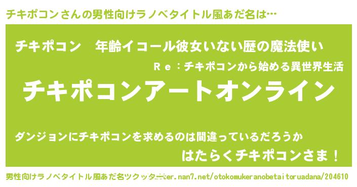 | 胡散臭い通販商品みたいなあだ名 | 『モテモテ間違いなし水晶球…その名も「チキポコン」』 |