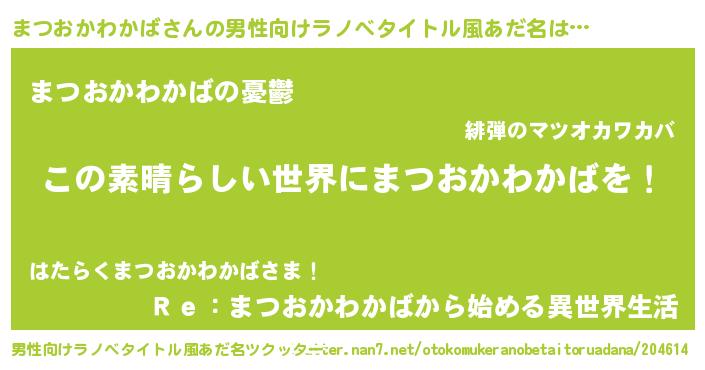 | 胡散臭い通販商品みたいなあだ名 | 『あなたにだけ特別に提供する限定10本のレアな日本酒…その名も「まつおかわかば」』 |