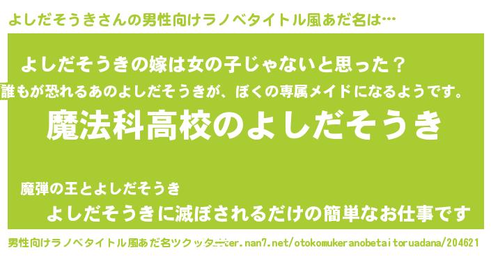 | 意味不明あだ名 | 『自称よしだそうき』 |