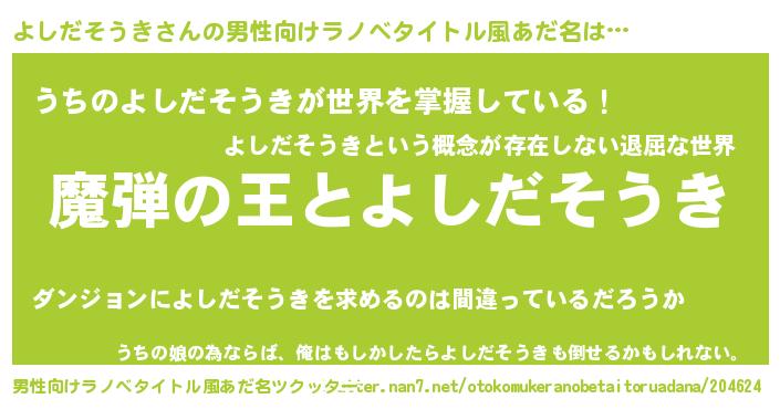 | 意味不明あだ名 | 『住所不定無職よしだそうき(71歳)』 |