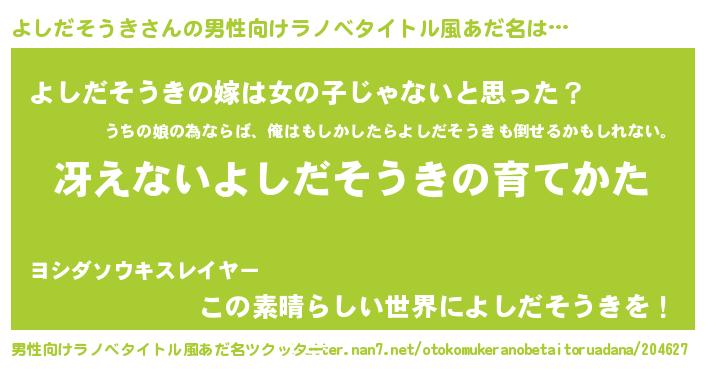 | 女子向けラノベタイトル風あだ名 | 『男装よしだそうきの憂鬱な任務』 |