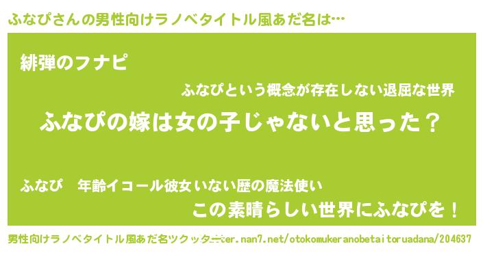 | 女子向けラノベタイトル風あだ名 | 『ふなぴ様がみてる』 |