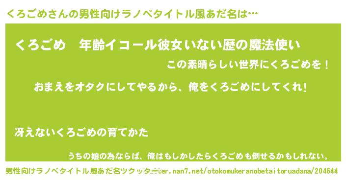| 女子向けラノベタイトル風あだ名 | 『くろごめ夫妻のなれそめ』 |