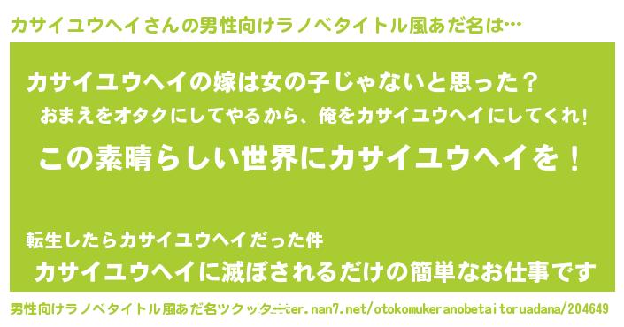 カサイユウヘイさんの男性向けラノベタイトル風あだ名をツクッター!