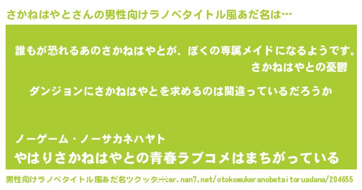 | 女子向けラノベタイトル風あだ名 | 『さかねはやとは平凡を望む』 |