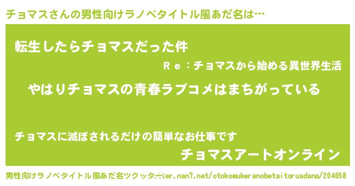 | 欧米人風あだ名 | 『チョマスクリステル』 |