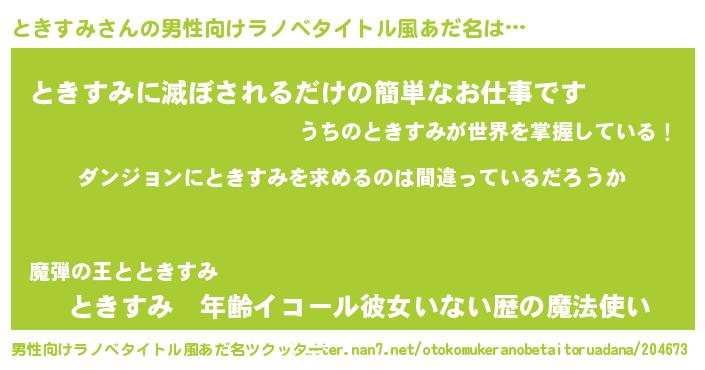 | ポケモン風あだ名 | 『ヒトキスミ』『トキゴンZ』 |