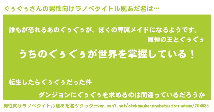| 女子向けラノベタイトル風あだ名 | 『男装ぐぅぐぅの憂鬱な任務』 |