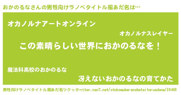 | 女子向けラノベタイトル風あだ名 | 『乙女ゲームの破滅フラグしかない悪役おかのるなに転生してしまった…』 |