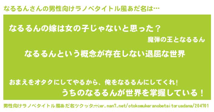 | 女子向けラノベタイトル風あだ名 | 『異世界で失敗しない100のなるるん』 |