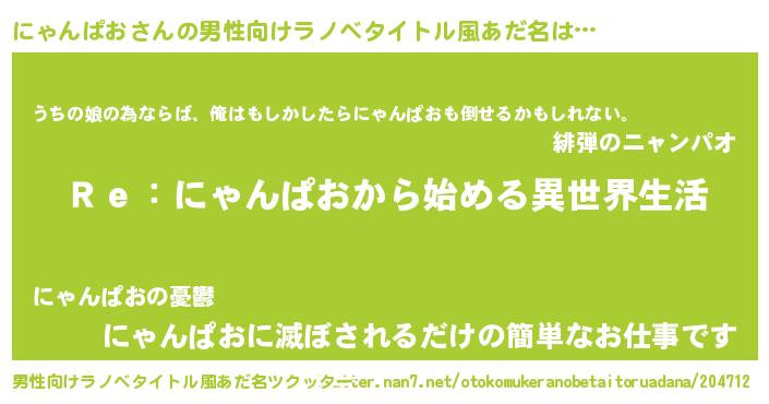 | 女子向けラノベタイトル風あだ名 | 『闇のにゃんぱお』『にゃんぱおの婚約者』 |