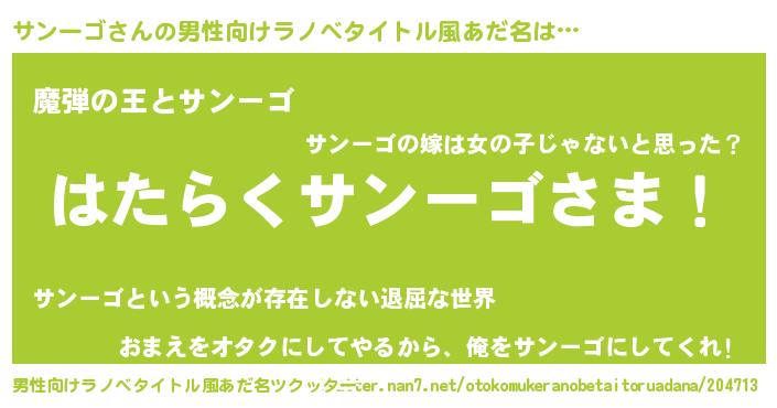 | 意味不明あだ名 | 『住所不定無職サンーゴ(43歳)』 |