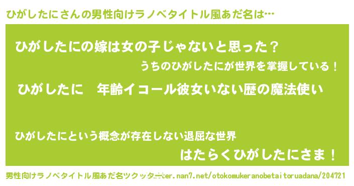 ひがしたにさんの男性向けラノベタイトル風あだ名をツクッター!