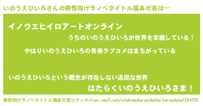 | 女子向けラノベタイトル風あだ名 | 『いのうえひいろの雑貨屋さん』 |