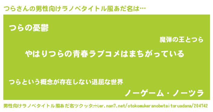 | 女子向けラノベタイトル風あだ名 | 『つら伯爵の花嫁』『つら姫と円卓の騎士』 |