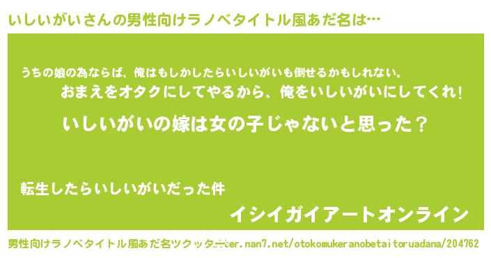 いしいがいさんの男性向けラノベタイトル風あだ名をツクッター!