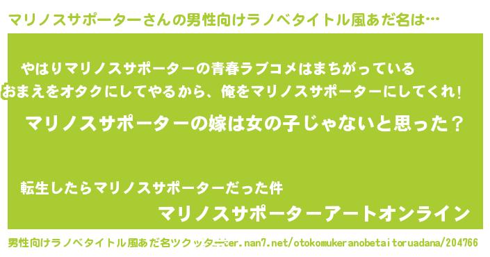 | 女子向けラノベタイトル風あだ名 | 『マリノスサポーター様がみてる』 |
