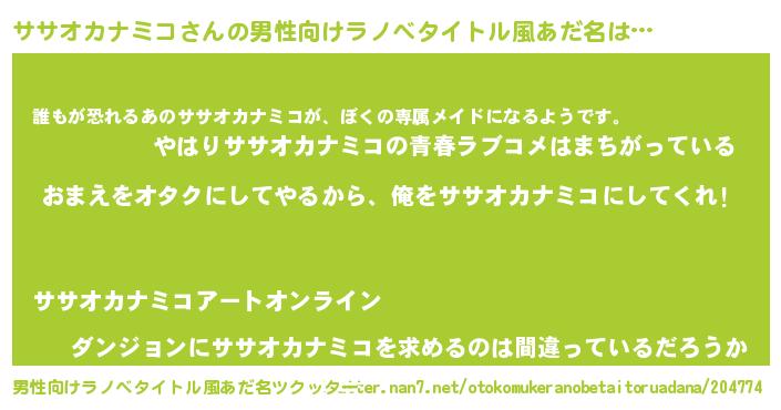 | ヘコむあだ名 | 『ササオカナミコ(笑)』『ササ太郎』 |