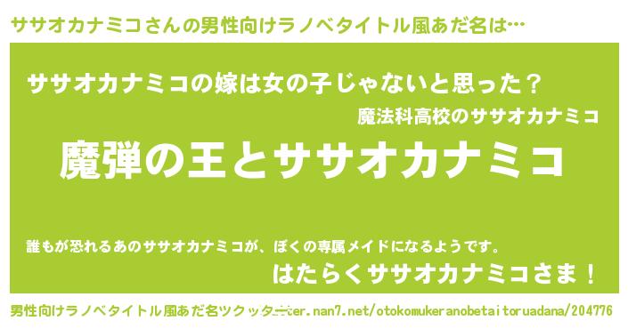 | 女子向けラノベタイトル風あだ名 | 『ササオカナミコが死なない童話 林檎のササオカナミコの診療簿』 |