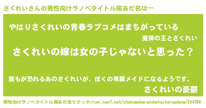 | 女子向けラノベタイトル風あだ名 | 『さくれいの卵を拾いまして』 |