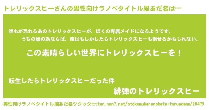 | 意味不明あだ名 | 『住所不定無職トレリックスヒー(86歳)』 |