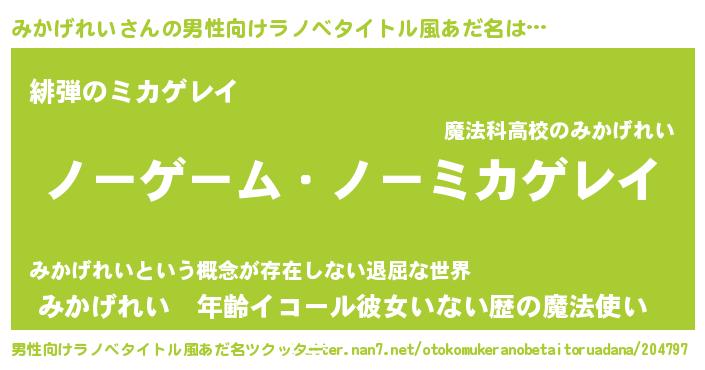 | ヒーロー風カッコイイあだ名 | 『愛の使者みかげれい』『ネオミカゲレイ』 |