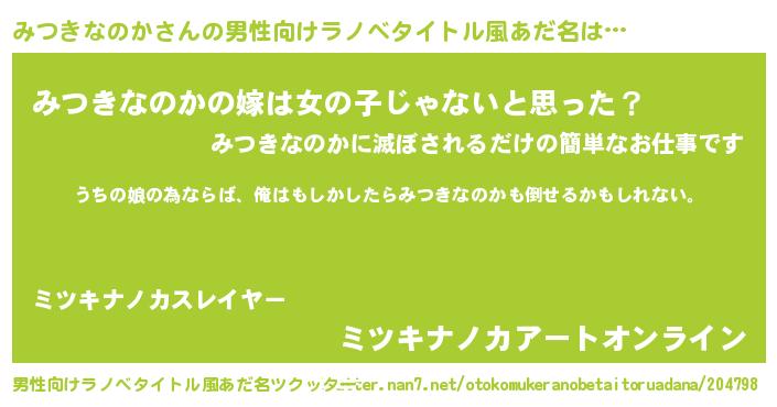 | 女子向けラノベタイトル風あだ名 | 『みつきなのかの婚約者』 |