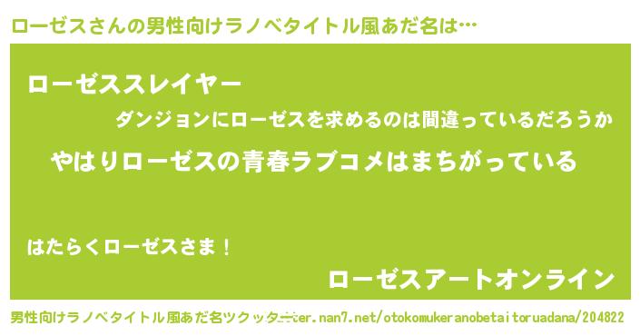 | 女子向けラノベタイトル風あだ名 | 『ローゼスの雑貨屋さん』 |