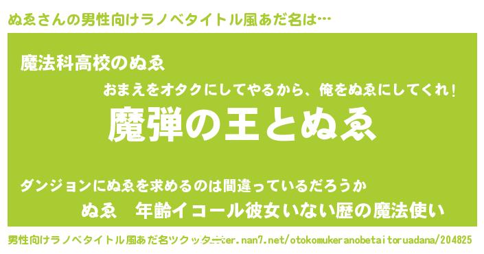 | 女子向けラノベタイトル風あだ名 | 『ぬゑが死なない童話 林檎のぬゑの診療簿』 |
