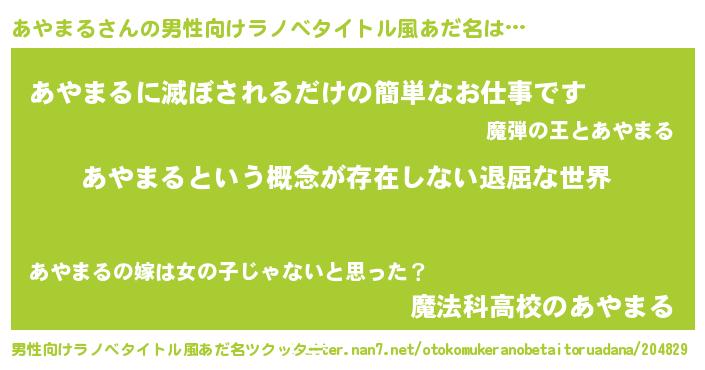 | 胡散臭い通販商品みたいなあだ名 | 『絶対に幸福をもたらす水素水…その名も「あやまる」』 |