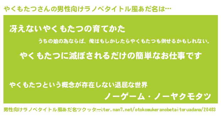 | ヒーロー風カッコイイあだ名 | 『慈愛の使者やくもたつ』『仮面ヤクダー』 |