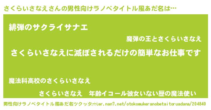 | ヘコむあだ名 | 『さく太郎』『さくらいさなえ(苦笑)』 |
