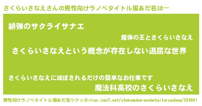 | 胡散臭い通販商品みたいなあだ名 | 『来世でも幸せになれる水素水…その名も「さくらいさなえ」』 |