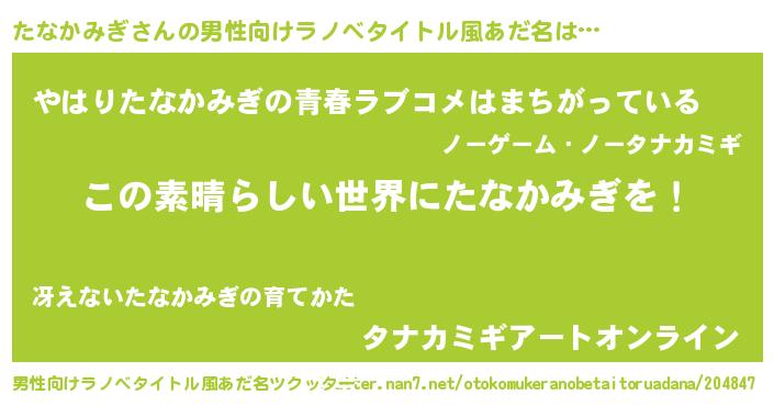 | 意味不明あだ名 | 『住所不定無職たなかみぎ(84歳)』 |