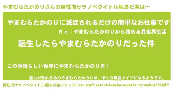 | 胡散臭い通販商品みたいなあだ名 | 『来世でも幸せになれる水素水…その名も「やまむらたかのり」』 |