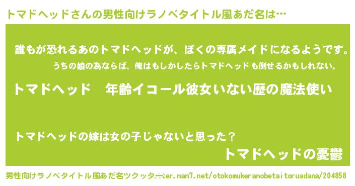 | 胡散臭い通販商品みたいなあだ名 | 『前代未聞の健康食品…その名も「トマドヘッド」』 |