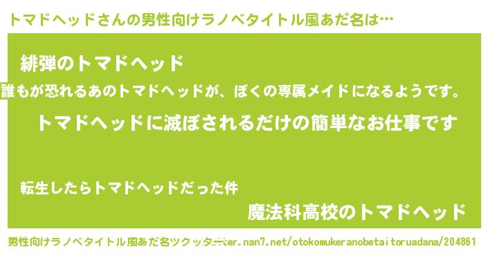| 意味不明あだ名 | 『自称トマドヘッド』 |