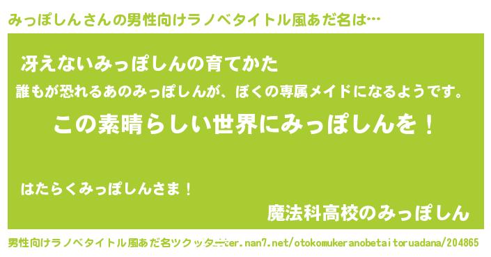 | 胡散臭い通販商品みたいなあだ名 | 『あなたにだけ特別に提供する世界で10本だけ現存している希少なブランデー…その名も「みっぽしん」』 |