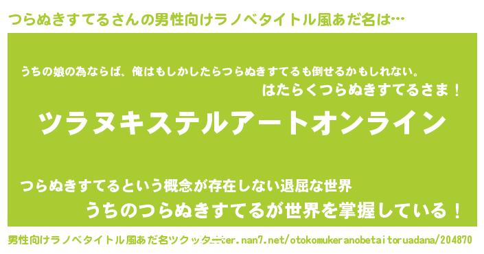 | 胡散臭い通販商品みたいなあだ名 | 『億万長者になれる霊験あらたかなお札…その名も「つらぬきすてる」』 |