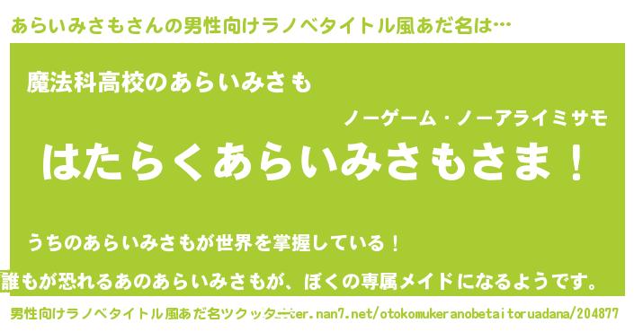 | 意味不明あだ名 | 『自称あらいみさも』 |