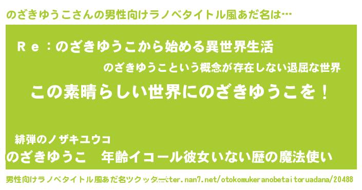 | ヘコむあだ名 | 『のざきゆうこ(小並感)』『のざぷりん』 |