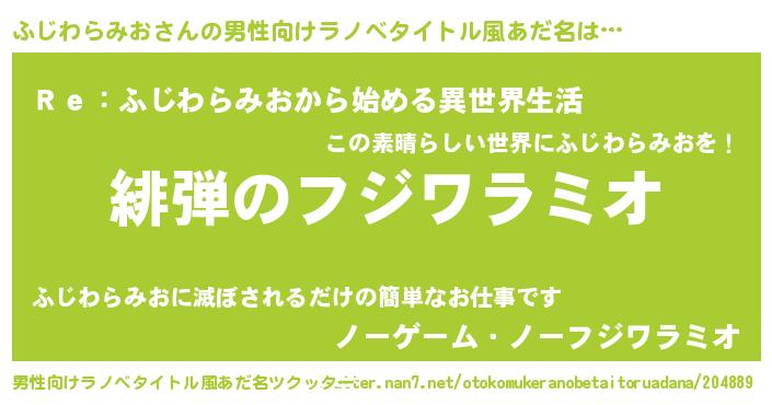 | ヘコむあだ名 | 『ふじわらみお(笑)』『ふじにゅー』 |