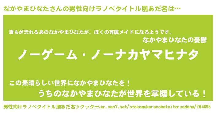 | 女子向けラノベタイトル風あだ名 | 『死神なかやまひなたの再婚』 |